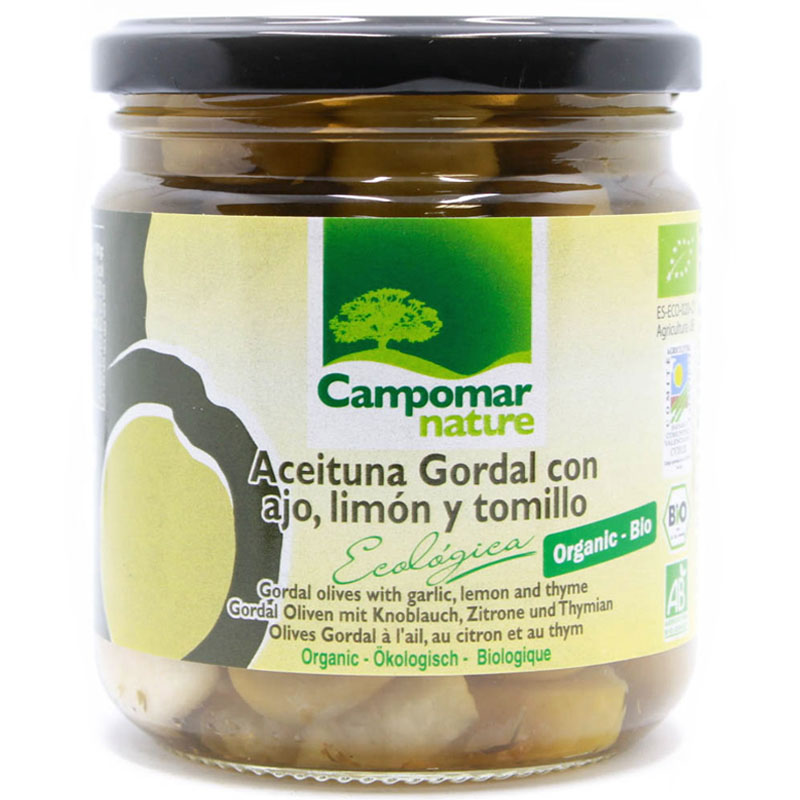 Aceituna gordal entera con ajo, limón y tomillo ecológica